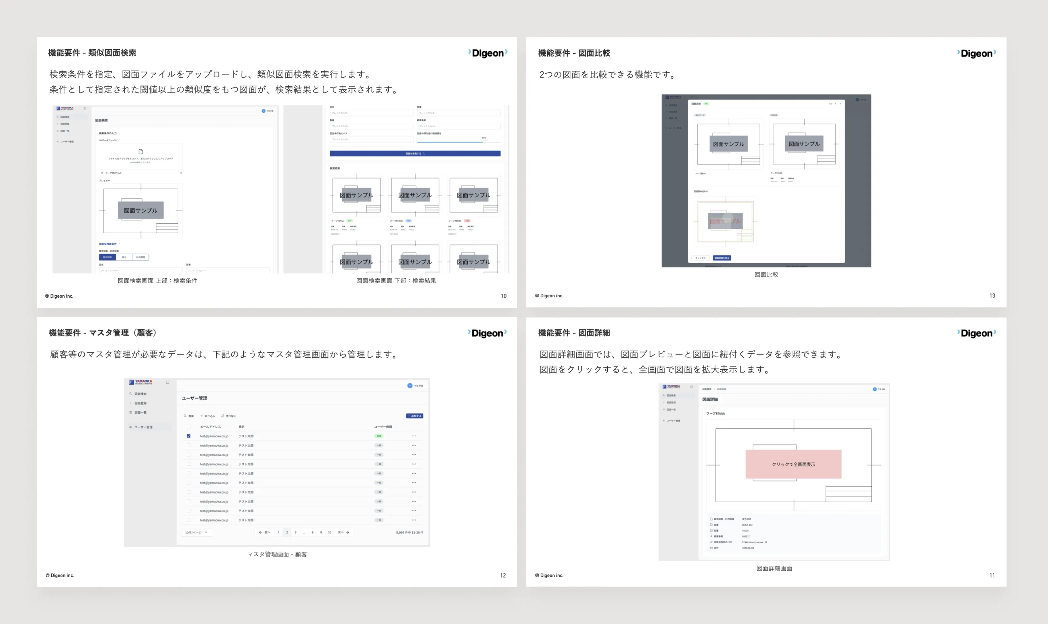 井上様:図面内の一部分を指定しての類似検索機能を構築し、図面の検索性を高めることを検討しています。また、OCR(文字認識)技術を活用して、図面内に記載された文字情報も検索精度向上に活かせれば、さらなる効率化が期待できます。